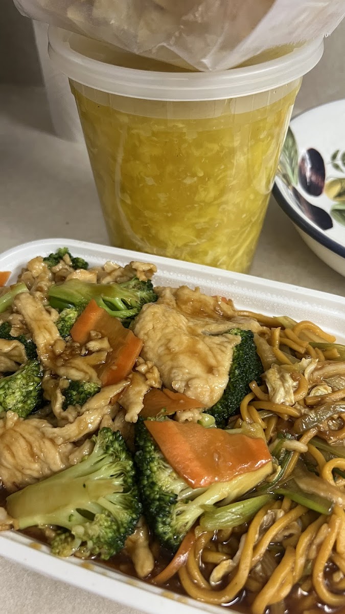 Ordered some egg drop soup but got a pint of lemon sauce that was meant for my husband’s lemon chicken other than that the food was good. Really love the rice.